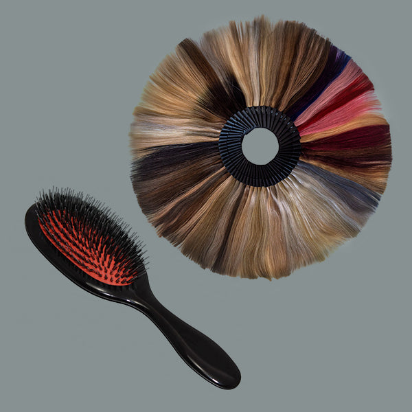 Of course, hair extensions do not consist of hair alone, but also of attachment points (such as keratin bonds, rings, or tapes). Here, you will find everything you need to reuse your extensions. But that’s not all – protective discs and finger guards help prevent burns when installing hair extensions. To keep your hair extensions looking beautiful, proper care is essential. You should always use a special extension brush for brushing, as it protects both the bonds and the hair. A bond remover and removal pliers are recommended for taking out keratin bond extensions, allowing you to remove them without leaving any residue. After removing the old strands and before installing new ones, you may find it helpful to use a clarifying shampoo. In this category, we also offer a colour ring made of human hair for colour matching. This makes selecting the right shade much easier than relying on monitor images, as colours can vary depending on screen settings.