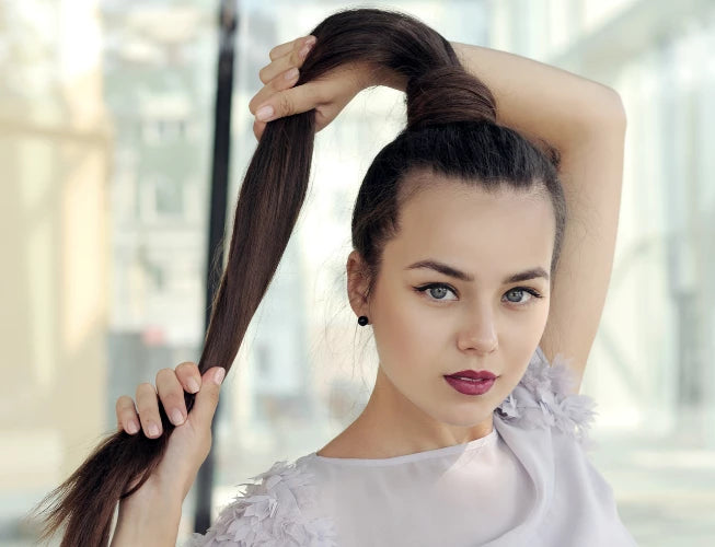 With human hair extensions, you can style your hair quickly and easily yourself. Our ponytail extensions ensure a particularly natural, voluminous and shiny look. If you choose the right colour, the ponytail is practically indistinguishable from your real hair. We offer these easy-to-attach ponytail extensions in our online shop and in our store in two lengths (50cm (20") and 60cm (24")) and almost 60 attractive colours - even in the popular ombré look. The ponytail extensions are indispensable for all trendsetters or models who love a varied and extravagant style.