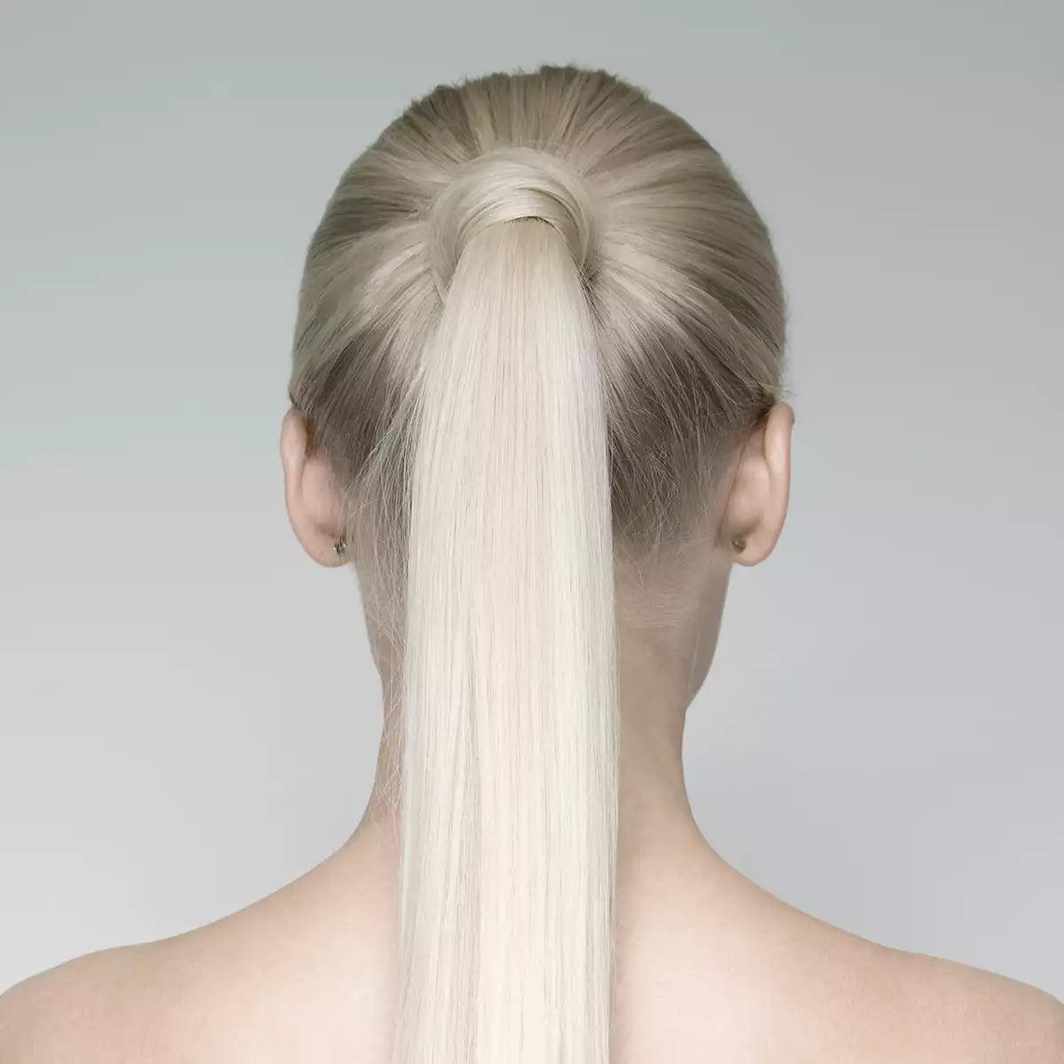 We offer ponytail extensions in various colour variations: single colour, ombré, root and balayage. With root and ombré, the length of the roots depends on the overall hair length: